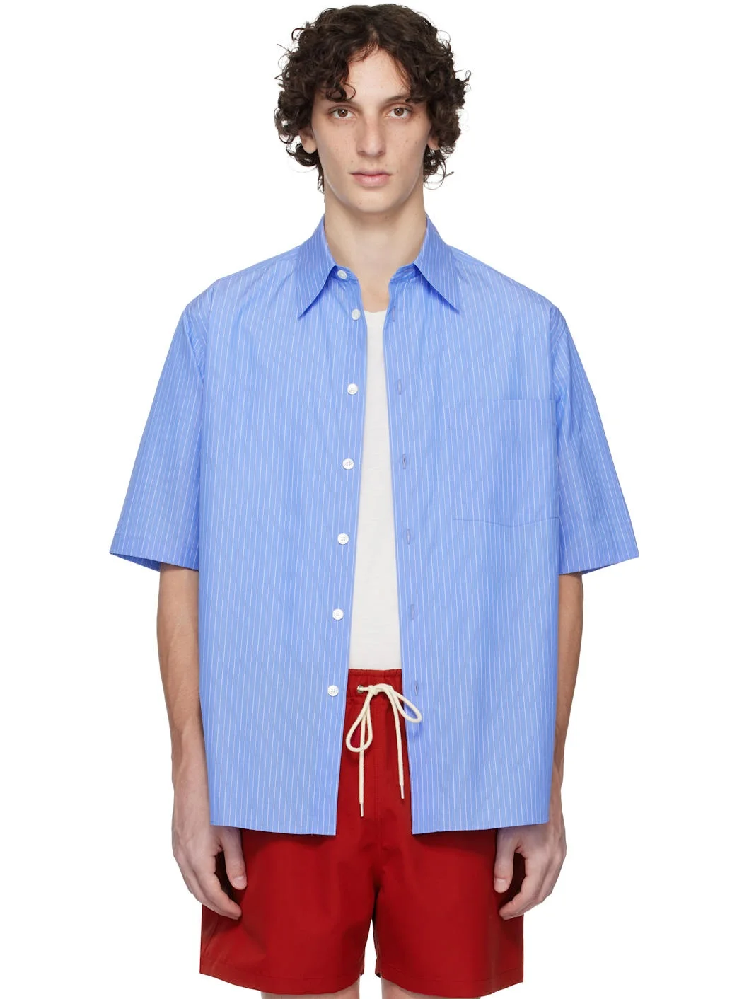 Suvin cotton broadcloth shirt. Stripes throughout. · Spread collar · Button closure · Shirttail hem Supplier color: Blue stripe 100% cotton. Made in Japan 252484M192004
