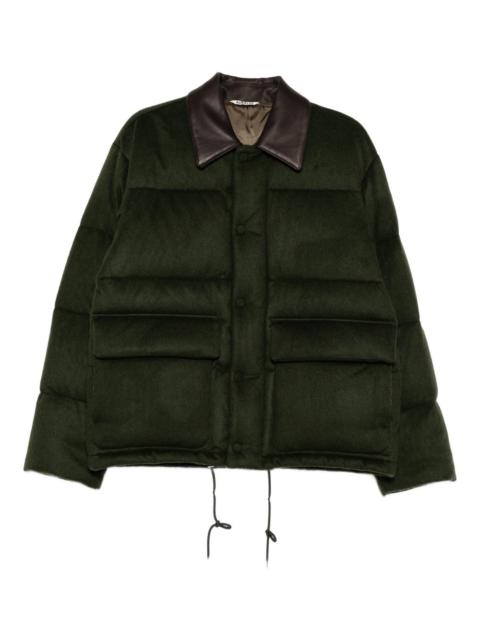 camel flannel down jacket Highlights - Olive green - Front press-stud and zip fastening - Two front flap pockets - Two side inset pockets - Drawstring hem Imported Composition Camel Hair 100% SIZE & FIT Model measurements Height 6 ft 1 in(1.86 m) Bust/Chest 33.46 in(85 cm) Hips 35.43 in(90 cm) Waist 31.1 in(79 cm) FittingInformation Designed to be unstructured, offering a loose fit throughout The internal drawstring at the hem allows for fitted preferences Made from a padded non-stretch fabric, giving it no natural elasticity Washing instructions Dry Clean Only