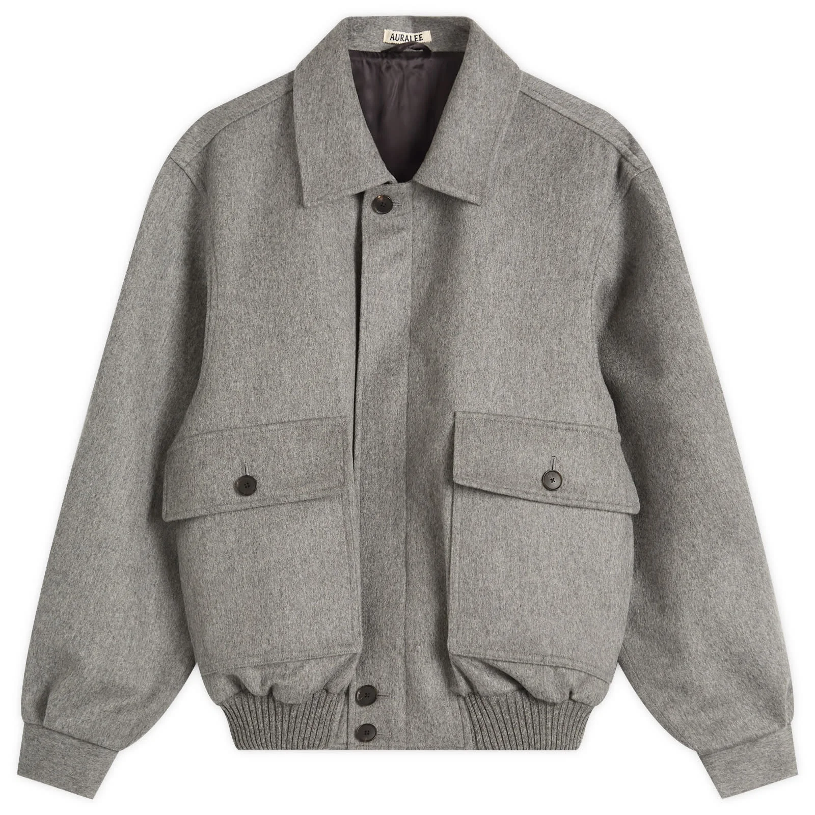Taking inspiration from a minimalist aesthetic, this Auralee jacket is knitted in Japan from luxurious cashmere. Oversized and fully lined, front flap pockets elevate the practicality. - 100% Cashmere - Point Collar - Zip Closure - Gathered Trims - Style Code: A25AB03CM-GRY