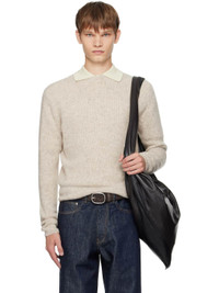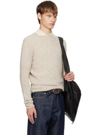 Brushed knit cashmere sweater. · Marling throughout · Rib-knit crewneck, hem, and cuffs Supplier color: Top gray beige 100% cashmere. Made in Japan 252484M201014