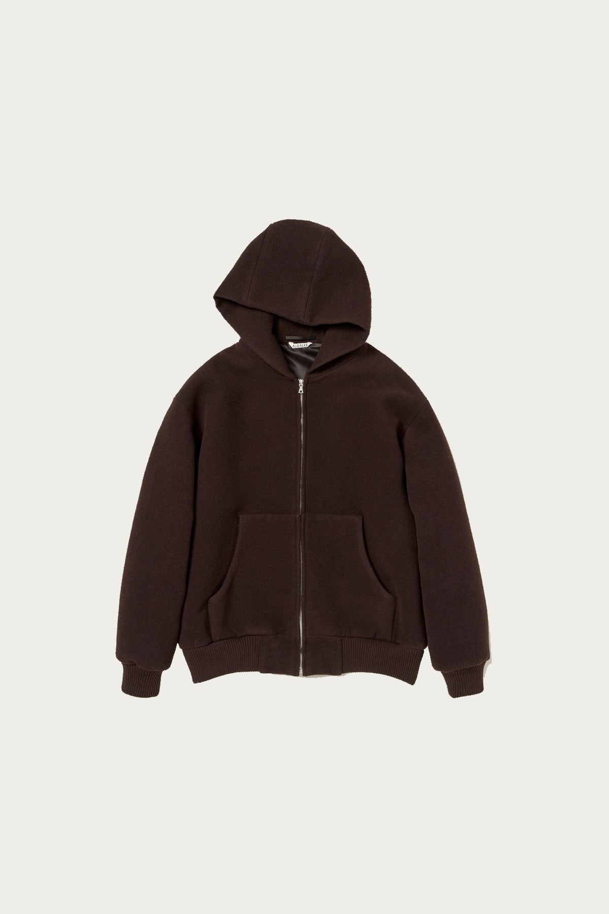 Double Cloth Heavy Wool Pile Zip Hoodie - Dark Brown