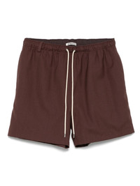 drawstring-waist short Highlights - Burgundy - Elasticated waistband - Belt loops - Two side slit pockets - Rear flap pocket Imported Composition Lining: Polyester 92%, Polyurethane 8% Outer: Wool 90%, Mohair 10% Washing instructions Dry Clean Only