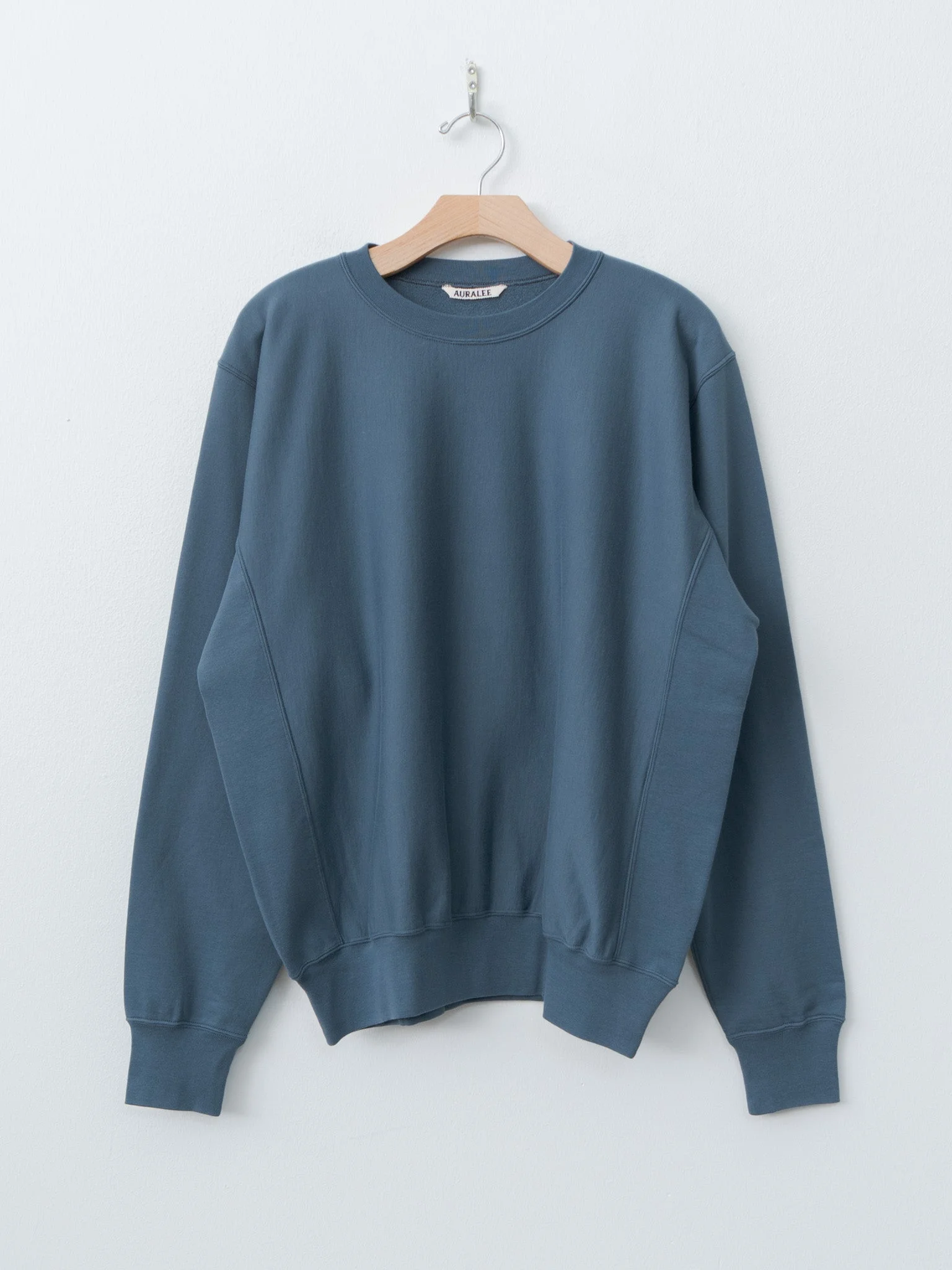 Auralee's signature luxe sweatshirt, defined by a light and springy outer with a subtle sheen and an incredibly soft and fluffy interior with maximized nap - we wish you could feel it. It’s made from a seasonless sweatshirt fabric, finely knitted from extra-long staple cotton using ultra-fine yarns on a rare knitting machine. Features a crewneck, dropped shoulders, and ribbed neck, side panels, cuffs and hem. Regular/loose fit - more compact fit than previous seasons. - Made in Japan - 100% Cotton - Available in Dusty Blue, Ivory Beige, and Ink Black - The model is 6'1"/185cm and wears size 4/M