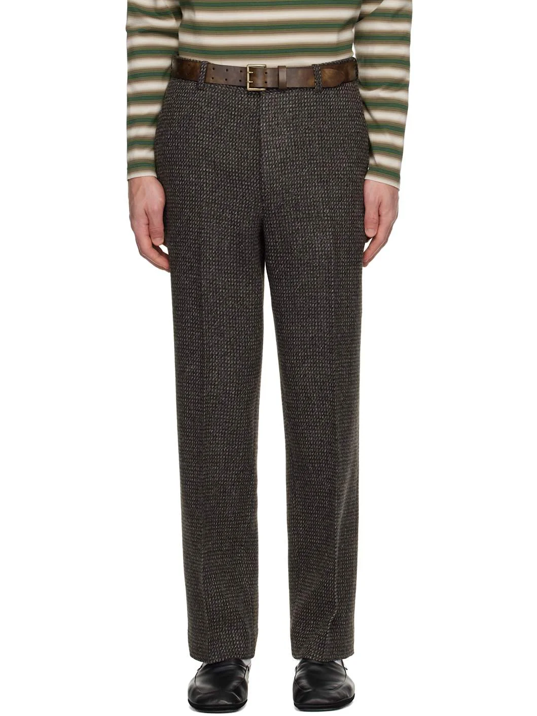 Wool- and silk-blend tweed trousers. · Straight-leg · Belt loops · Four-pocket styling · Zip fly · Creased legs Supplier color: Gray brown hairline Body: 60% wool, 25% alpaca, 15% silk. Pocket lining: 100% cupro. Made in Japan 252484M191013