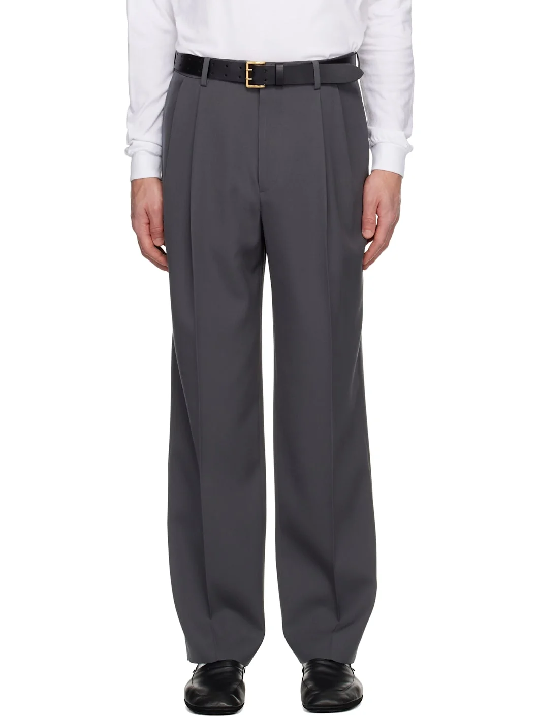 Gray Light Wool Two-Tucks Trousers