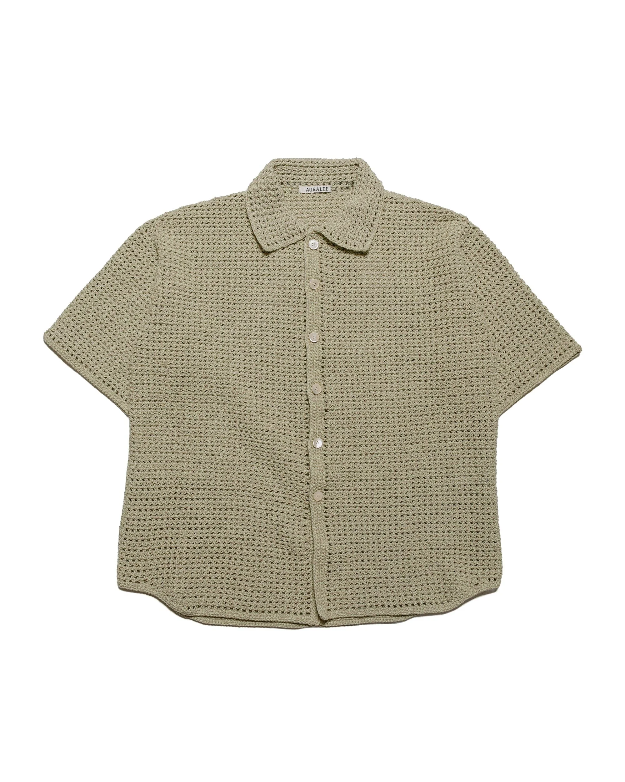 Hand Crochet Knit Half Sleeved Shirt Khaki Beige