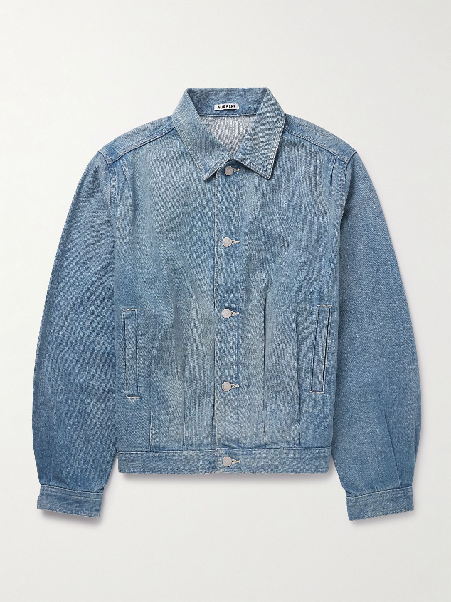Auralee's jacket is designed for an authentic vintage feel – the selvedge denim is woven on a shuttle loom from short-staple fibres for a softer, worn-in handle. It has a relaxed fit with pleats at the shoulder, cuffs and through the hem to define the shape. Size & Fit - Size 3 = XS, 4 = S, 5 = M - Fits true to size. Take your normal size - Designed for a relaxed fit - Mid-weight, non-stretchy fabric - Model is shown wearing a 5 - Model measures: chest 38"/ 96cm, height 6'2"/ 188cm Details & Care - Blue selvedge denim - Button fastenings - 100% Supima cotton - Dry clean