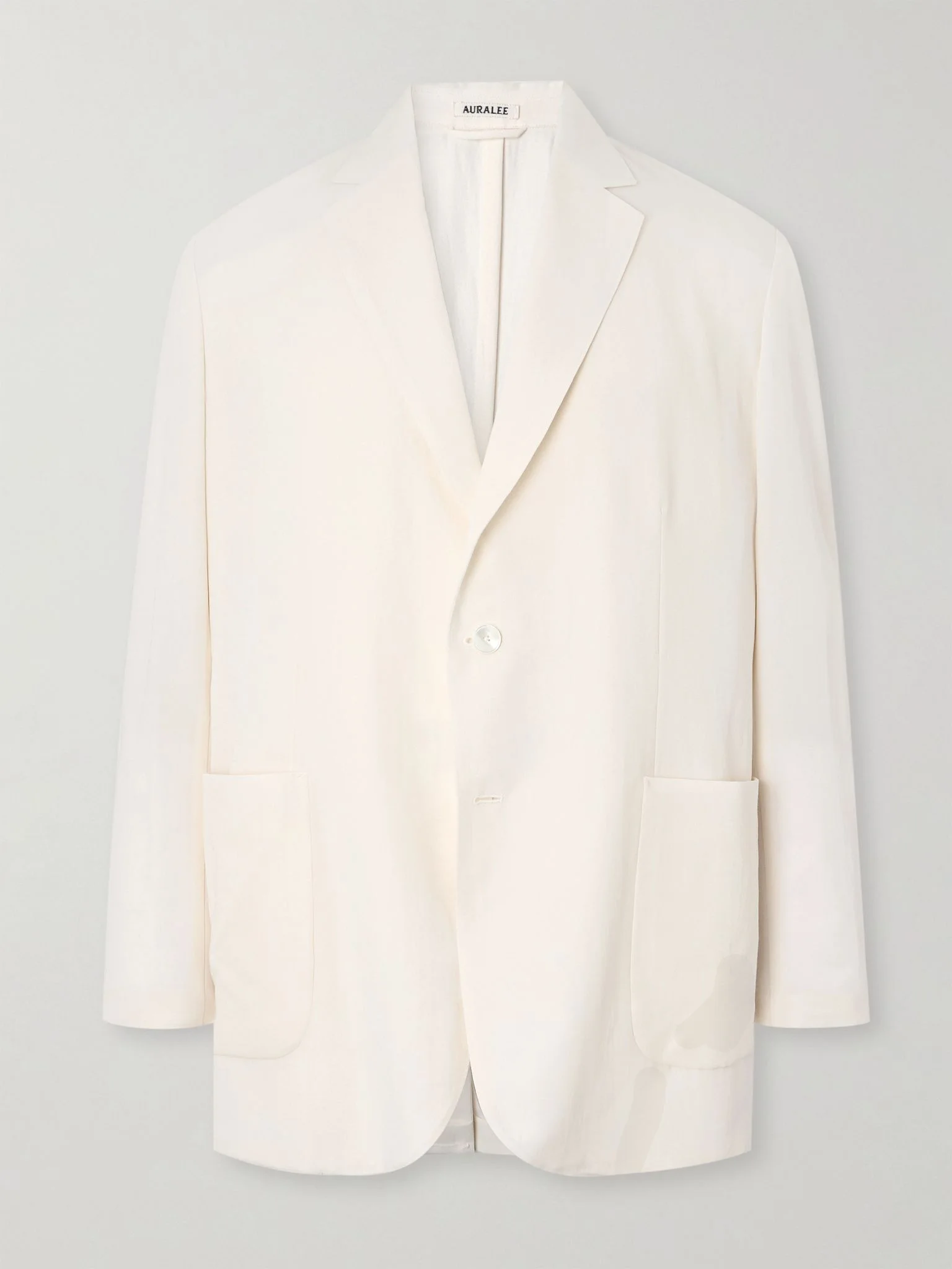 Auralee's blazer is cut from lightweight, smooth cotton and wool-blend gabardine. It has a relaxed feel thanks to its unstructured fit and split cuffs. Depending on your mood, layer yours over a casual tee or a tailored shirt. Size & Fit - Size 3 = XS, 4 = S, 5 = M - Intended to be oversized; we recommend sizing down if you prefer a closer fit - Lightweight, non-stretchy fabric - Model is shown wearing a 4 - Model measures: chest 38"/ 96cm, height 6'1"/ 185cm Details & Care - Cream cotton and wool-blend gabardine - Notch lapels, two front patch pockets, single vent, two internal pockets, unlined - Two button fastening - 60% cotton, 40% wool; buttons: 100% horn (Buffalo) - Dry clean