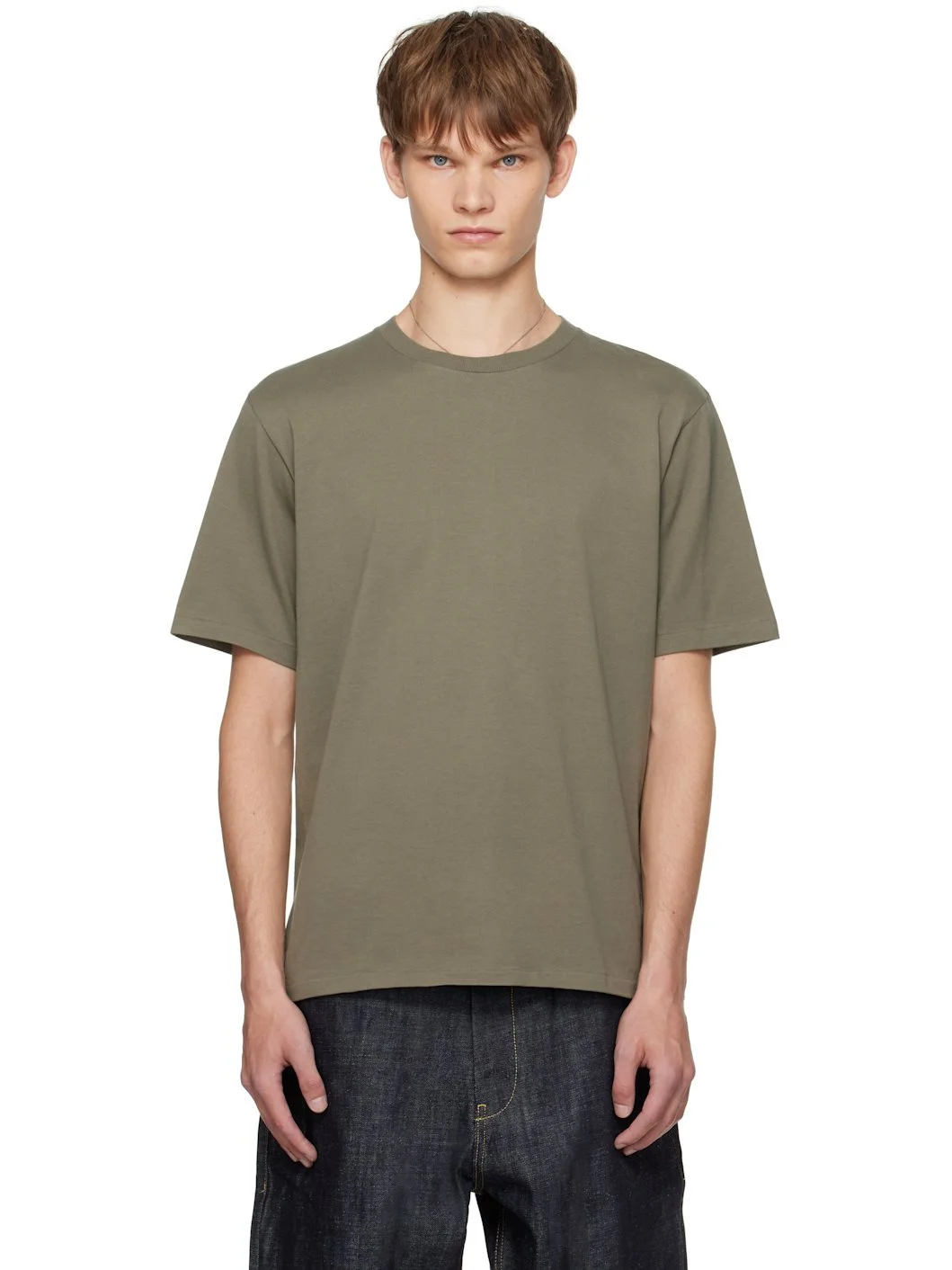 Extra-long staple pima cotton jersey T-shirt. Rib-knit crewneck. Supplier color: Khaki 100% cotton. Made in Japan 252484M213012