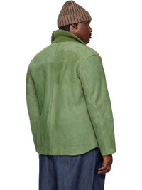 Sheepskin suede jacket. · Inverted seams throughout · Spread collar with shearling undercollar · Button closure · Patch pocket at chest · Merino shearling interior Supplier color: Green 100% lambskin. Made in Japan 252484M179001
