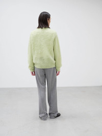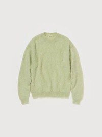 An AURALEE Autumn Winter staple, mohair knit crafted from soft Super Kid Mohair, spun into a gentle twist, with a core yarn made of soft natural wool. The result is a luxuriously fluffy knit that exudes warmth and lightness. Featuring a smooth, silky feel and the distinctive lustrous sheen of mohair, it also boasts a voluminous texture with long, flowing fibers that add depth and richness. Relaxed fit Material MOHAIR 60% WOOL 40%