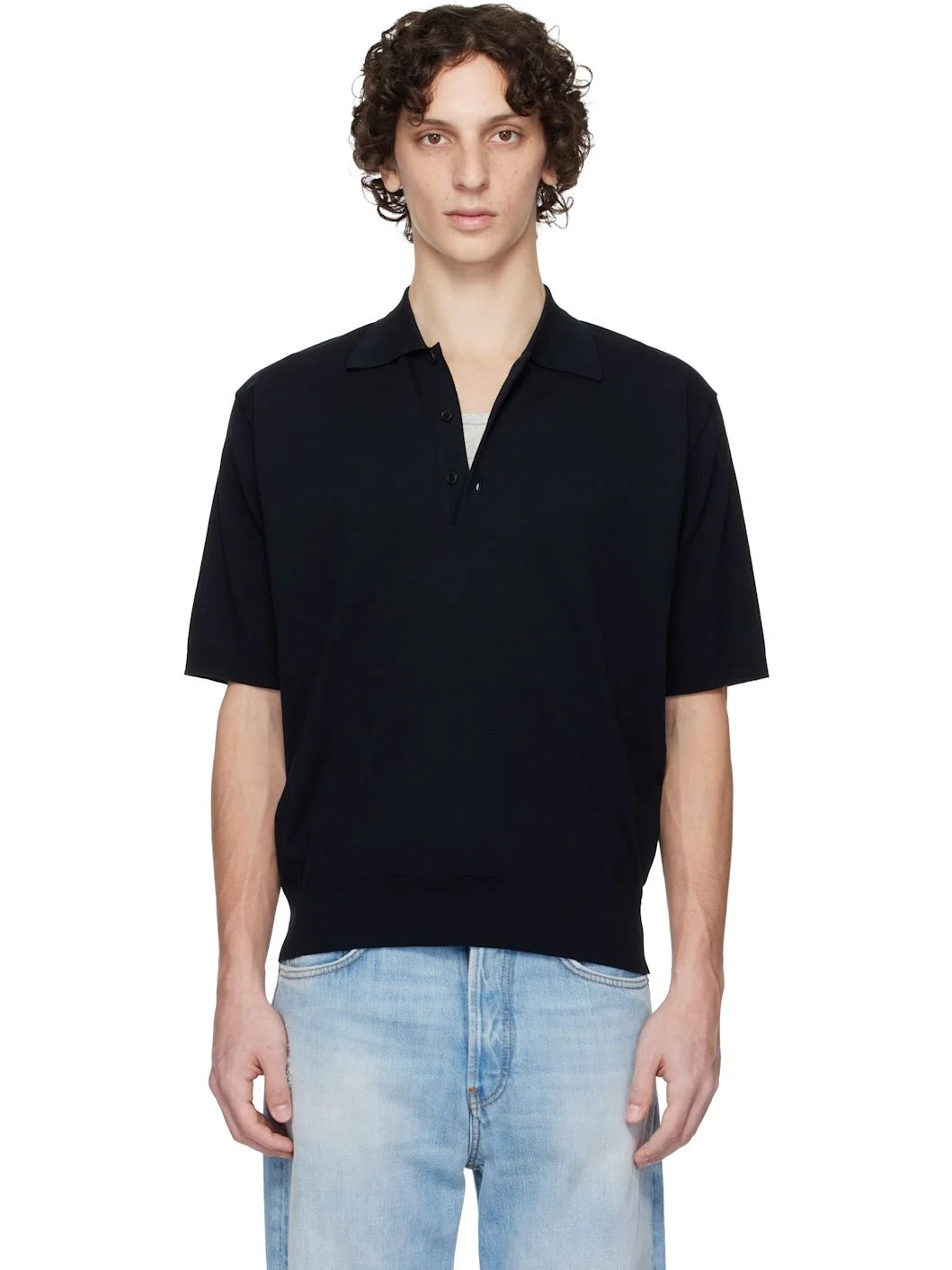 Knit extra-long staple Sea Island cotton polo. · Spread collar · Three-button placket · Rib-knit hem and cuffs Supplier color: Dark navy 100% cotton. Made in Japan 252484M212003