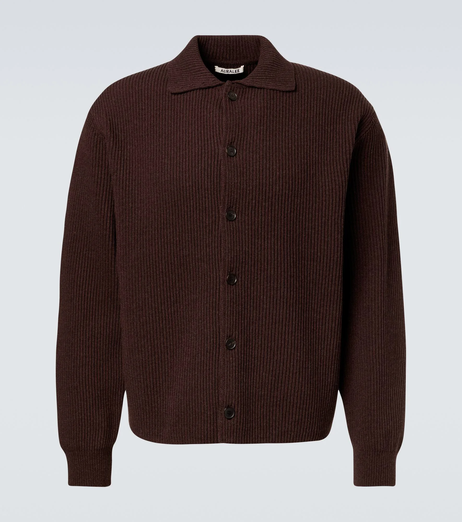 Look to Auralee for modern staples that showcase refined ease. Made from soft wool, this buttoned cardigan features a ribbed-knit pattern and is complete with a pointed collar. Product Details - Material: 100% wool - Care instructions: dry clean - Made in Japan - Designer color name: Top Brown - Item color: brown - Closure: buttoned front - Cuff: ribbed - Hem: ribbed - Item number: P01069159 Size & Fit - True to size - Straight fit - Slightly stretchy fabric - Falls to the hip - Height of model is 190cm-75" and wears a size 5