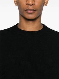 ribbed-knit wool sweater Highlights - Black - Wool - Ribbed knit - Crew neck - Long sleeves - Ribbed cuffs and hem Imported Composition Wool 100% SIZE & FIT Model measurements Height 6 ft 2 in(1.87 m) Bust/Chest 36.22 in(92 cm) Hips 37 in(94 cm) Waist 27.95 in(71 cm) FittingInformation Designed for a relaxed fit, this piece allows for comfort and movement when worn The ribbed hem offers a close, comfortable fit Made with a midweight knit, this piece offers some stretch Washing instructions Dry Clean Only