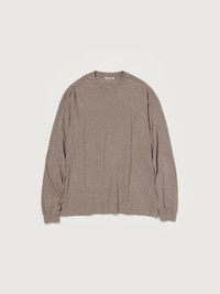 A seamless tube jersey fabric meticulously crafted with uncompromising attention to every stage―from fiber selection to yarn twisting and knitting. Made from specially chosen extra-long staple cotton with exceptionally long fibers, it offers an exquisite touch with soft, supple texture and a natural sheen. One of AURALEE’s signature materials, it is a timeless piece to be enjoyed year-round. Regular fit Material COTTON 100%