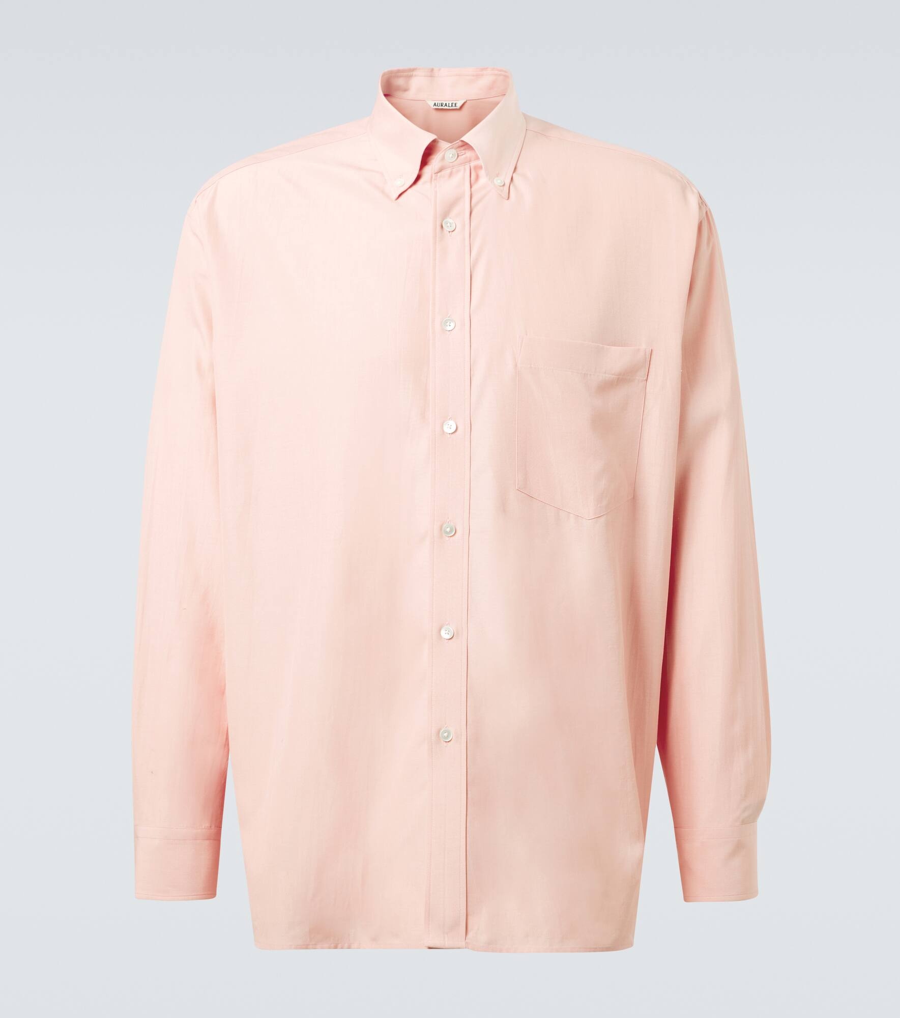 Inspired by the simplicity of nature, Auralee creates timeless pieces that exude understated elegance and purposeful design. Cut from pure silk in a delicate light pink hue, this dress shirt features a slightly oversized silhouette, striking the perfect balance between effortless sophistication and subtle formality. Product Details - Material: 100% silk - Care instructions: hand wash - Made in Japan - Designer color name: Light Red Chambray - Item color: pink - Closure: buttoned front - Pockets: angled chest pocket - Item number: P00983897 Size & Fit - True to size - With pleats in the back - Oversized - Non-stretchy fabric - Falls below the hip - Height of model is 189cm-74.5" and wears a size 4