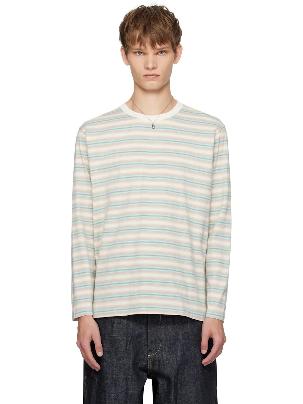 Blue & Beige Gradient Stripe Jersey L/S T-shirt