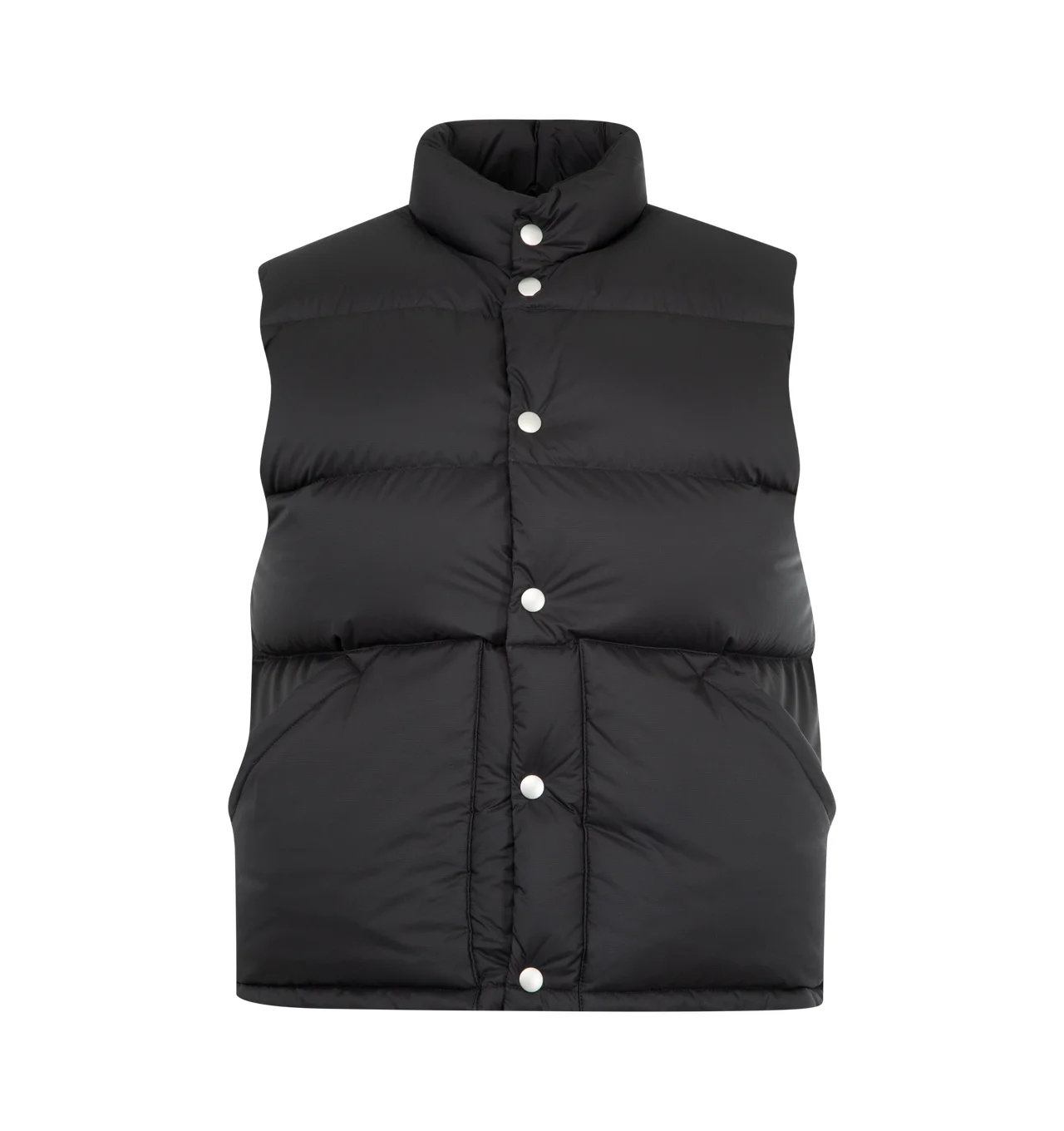AURALEE Super Light Nylon Ripstop Down Vest featuring down-filled and lightweight nylon micro ripstop vest, wind-resistant and water-repellent, relaxed-fit, funnel neck, press-stud closure and welt pockets. 100% nylon. DESIGNER STYLE ID: A25AV02NL COLOR: BLACK