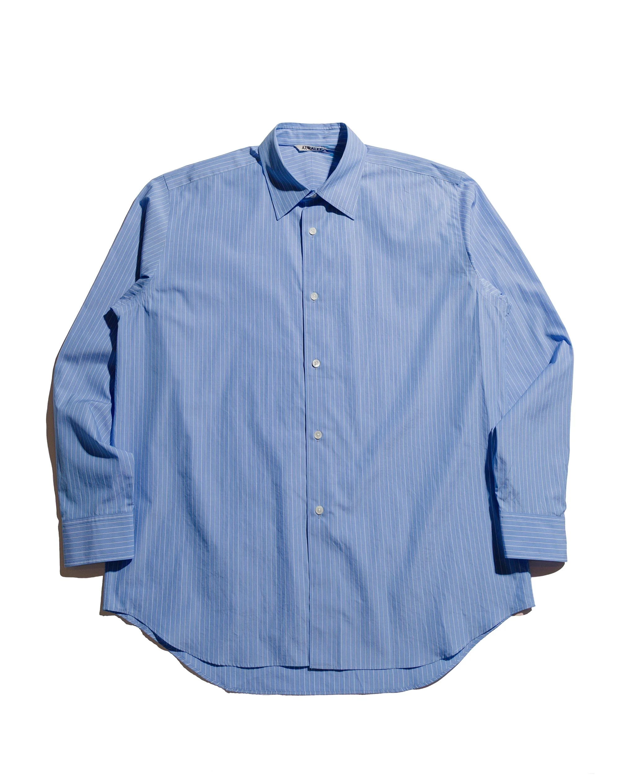 We've extolled the virtues of the Finx fabric in the past, but what we haven't brought in yet is a striped version. And hot damn does this hit. The perfect blue and white striped shirt, where the stripe is the perfect width and the blue just extols the virtues of your eyes. Sure, maybe you don't have blue eyes but if you do, this one is going to hit extra special. DETAILS - Striped broadcloth fabric woven from extra-fine Suvin cotton - Rear shoulder pleats - Curved hem - 100% cotton - Made in Japan - Model is 6'0” (183cm), 150lbs (68kg) and wearing 4