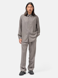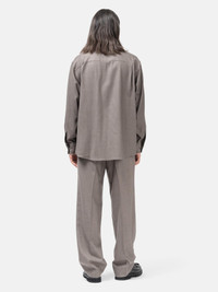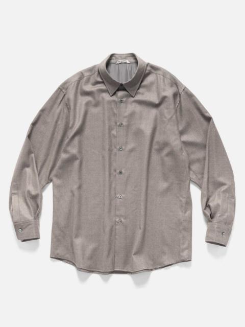 The Auralee Super Light Wool Shirt embodies understated luxury with its fine wool viyella fabric, crafted using ultra-fine combed yarn and treated with an eco-friendly anti-shrink process. This relaxed-fit shirt features a spread collar, dropped shoulders, and pleated cuffs, combining a smooth, lightweight feel with a sophisticated sheen. Thoughtfully finished with mother-of-pearl buttons and partial satin lining, it’s a refined choice for layering or standalone wear. DETAILS - A25AS01OS - 100% Wool - 100% Cupro partial lining - Worsted wool flannel fabric - Relaxed fit - Classic spread collar - Button-front closure - Mother-of-pearl buttons - Back yoke pleats - Pleated barrel cuffs - Shirttail hem - Made in Japan
