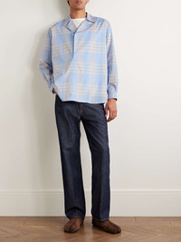 Auralee's checked cotton shirt is exceptionally lightweight and breathable, so it'll serve you well during warmer months. Cut for a comfortable fit, it has a retro camp collar and asymmetric covered placket for a slightly off-kilter look. Size & Fit - Size 3 = XS, 4 = S, 5 = M - Fits true to size. Take your normal size - Designed for a regular fit - Lightweight, non-stretchy fabric - Model is shown wearing a 4 - Model measures: chest 36"/ 92cm, height 6'2"/ 188cm Details & Care - Light-blue, white and yellow cotton - Button fastenings - 100% cotton - Machine wash