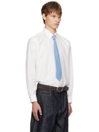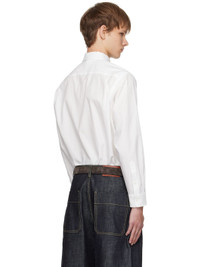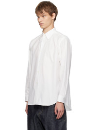 Washed extra-long staple Finx cotton twill shirt. · Spread collar · Button closure · Shirttail hem · Buttoned barrel cuffs · Twin pleats at back yoke · Mother-of-pearl hardware Supplier color: White 100% cotton. Made in Japan 252484M192023