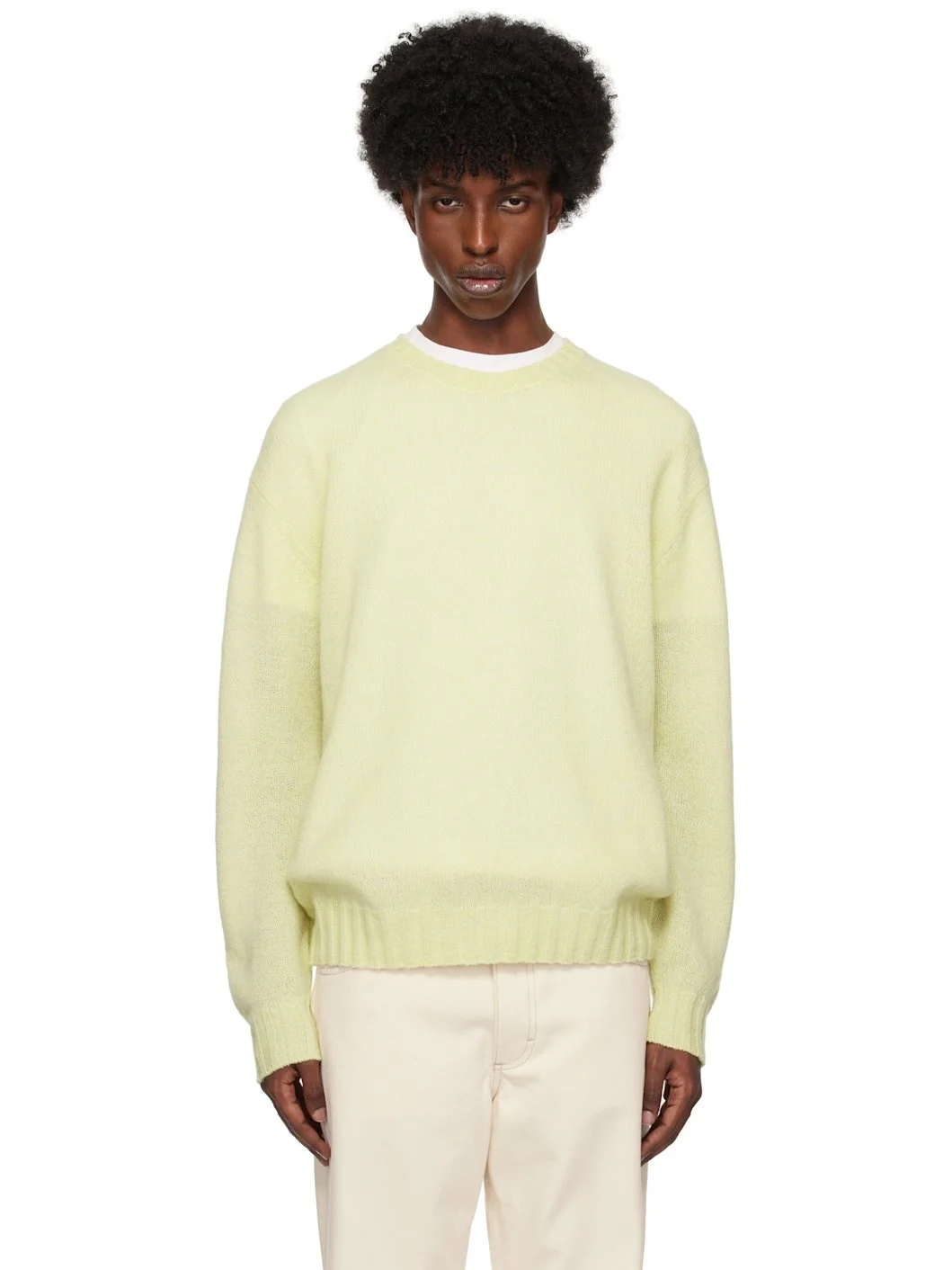 Relaxed-fit knit Shetland wool- and cashmere-blend sweater. · Rib-knit crewneck, hem, and cuffs · Dropped shoulders Supplier color: Light yellow