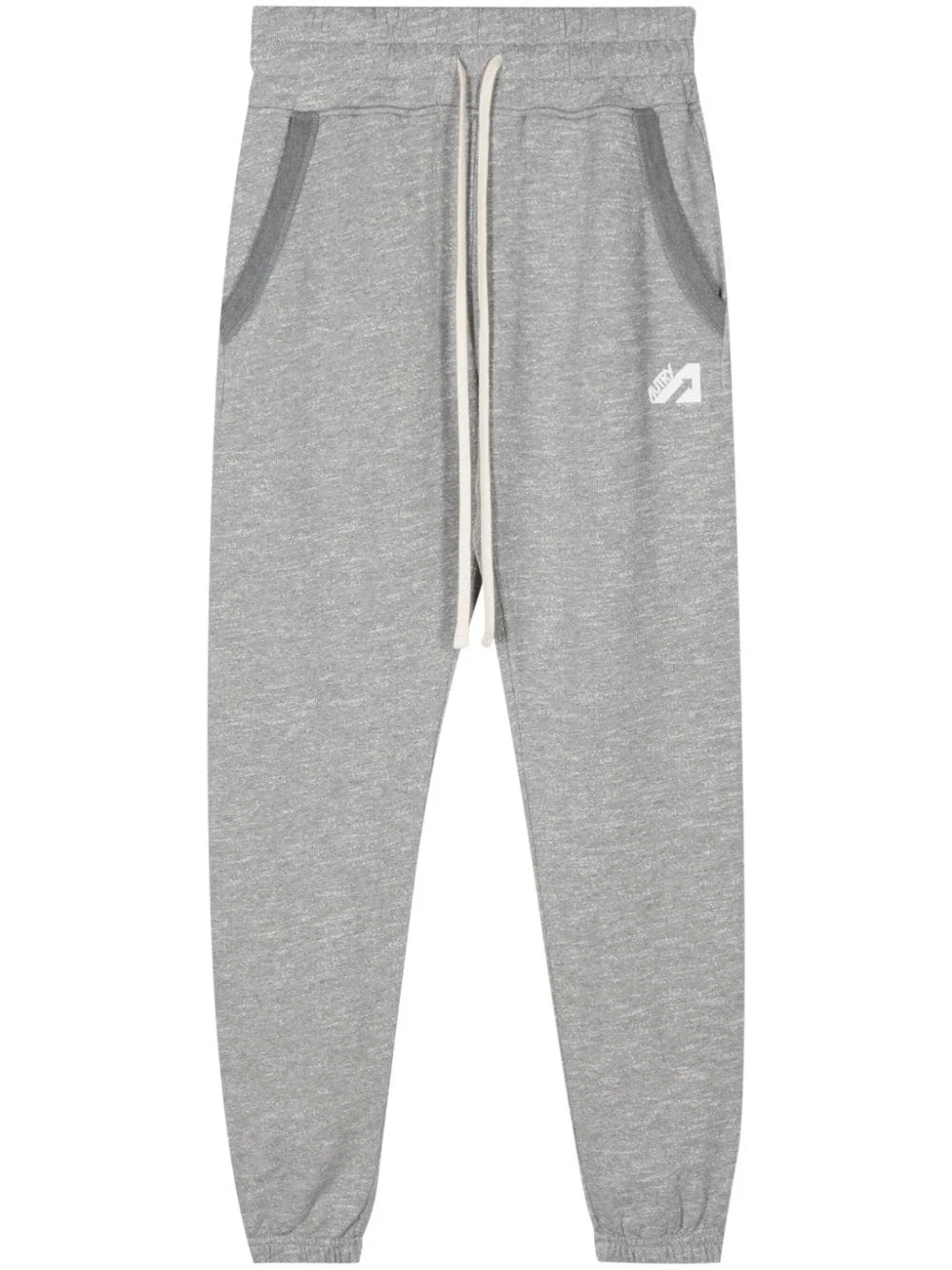 Action melange jersey trousers Highlights - Grey/white - Cotton blend - Jersey texture - Melange effect - Applique logo to the front - High-waisted - Straight leg - Elasticated ankles - Two front welt pockets - Rear patch pocket - French terry lining - Elasticated drawstring waistband Made in Italy Composition Cotton 92%, Viscose 8%