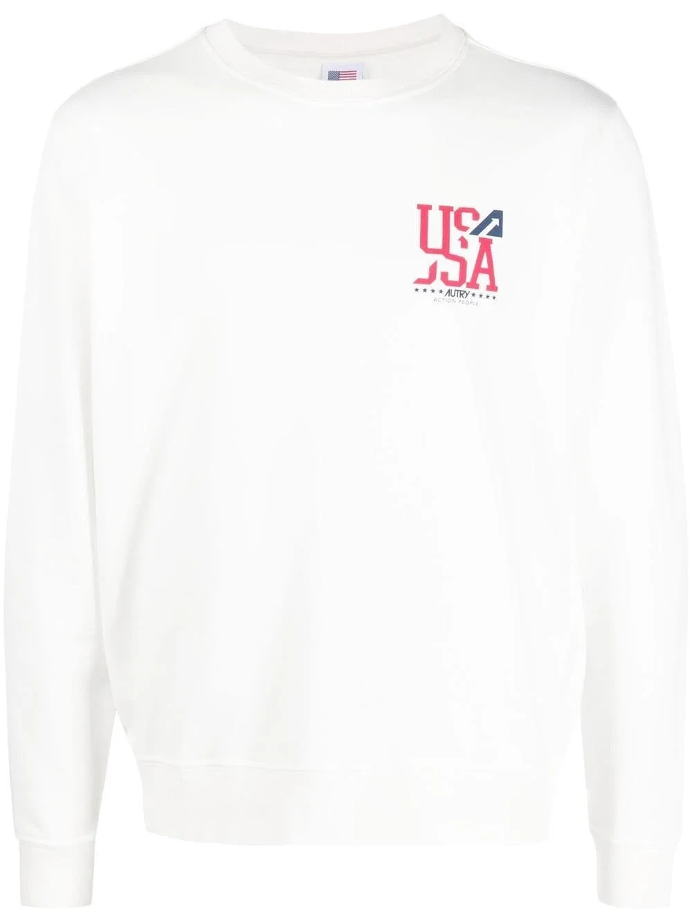 cotton logo-print sweatshirt red/white/blue cotton logo print at the chest logo print to the rear crew neck long sleeves straight hem Made in Italy Composition Cotton 100% SIZE & FIT Model measurements Height 6 ft 2 in(1.87 m) Bust/Chest 36.41 in(92.5 cm) Hips 37 in(94 cm) Waist 29.52 in(75 cm) FittingInformation This piece fits true to size. We recommend you get your regular size Cut for a relaxed fit Made with a mid-weight fabric