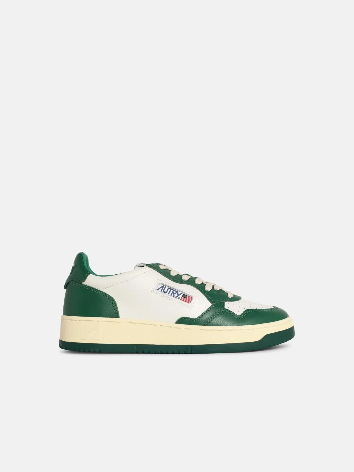 GREEN AND WHITE LEATHER MEDALIST SNEAKERS