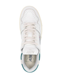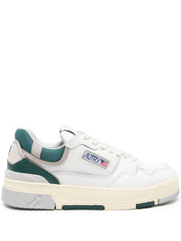 CLC leather chunky sneakers Autry's CLC sneakers allude to the brand's sportive heritage. Inspired by archival basketball sneakers, the pair is crafted from smooth leather with a panelled design and set atop a flat rubber sole. Highlights - White/forest green - Calf leather - Smooth grain - Multi-panel design - Logo patch at the tongue - Logo patch to the side - Contrasting branded heel counter - Suede panels - Padded ankle - Front lace-up fastening - Round toe - Branded insole - French terry lining - Flat rubber sole - Logo at the sole - This piece comes complete with a protective dust bag. - Original box and papers included. Imported Composition Outer: Leather 100% Lining: Fabric 100% Sole: Rubber 100% SIZE & FIT Measurement HEEL 1.37 in(3.5 cm) Sole height 1.18 in(3 cm)