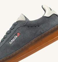 Simple and versatile, Dallas Low men’s sneakers are the must-have piece for those who love a sporty and metropolitan look. The low-top profile, sturdy and functional, is interpreted in gray color with a brown semi-transparent sole. Upper in soft, natural-looking suede enriched by the white leather heel tab with embossed Autry logo, which gives the whole shoe an authentic look. The Autry logo at side and white leather tongue add the final touch. SPECIFICATIONS: - Suede upper. - Flat laces in cotton. - Etched logo at tongue. - Padded collar. - Leather and cotton terry lining. - 2 cm-high raised sockliner in leather. - Rubber sole. - Height of sole: 2.5-3.5 cm. - Personalized shoe bag in fabric. COMPOSITIONS: Upper: 85% suede, 15% leather Lining: 40% leather, 50% cotton terry, 10% nylon Sole: 100% transparent rubber