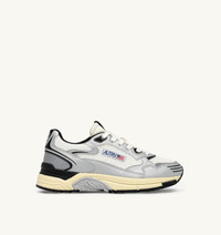 Hyperway: the Autry sneaker inspired by the future. Running style meets urban inspiration with the new Action Cush technology for maximum comfort. The upper stands out for the combined use of mesh, light and breathable for comfort, and silver-tone inserts introducing a modern style detail. This style is finished with black accents that add a pop of contrast color. The sole features 'Action Cush' technology, delivering enhanced cushioning and optimal comfort for a uniquely smooth and enjoyable movement experience. The TPR stabilizer, strategically placed, provides support and stability. This style stands out for its refined nylon tongue offering a sleek, functional design, along with the embossed leather back counter and jacquard fabric tag and logo on the side, which add an extra touch of authenticity. SPECIFICATIONS: - PU leather, leather and mesh upper. - Mesh toe. - Flat cotton laces. - Logo label detailing seamed at the tongue. - Padded ankle collar in mesh. - Cotton terry lining. - 15 mm high raised mesh fabric-lined sockliner. - PI sole. - Height of sole: 3.5 cm. - Personalized shoe bag in fabric. COMPOSITION: Upper: 45% synthetic material (100% PU), 40% mesh, 5% leather, 10% nylon Lining: 50% cotton terry, 10% nylon, 10% leather, 30% mesh Sole: 40% phylon, 40% rubber, 20% TPU