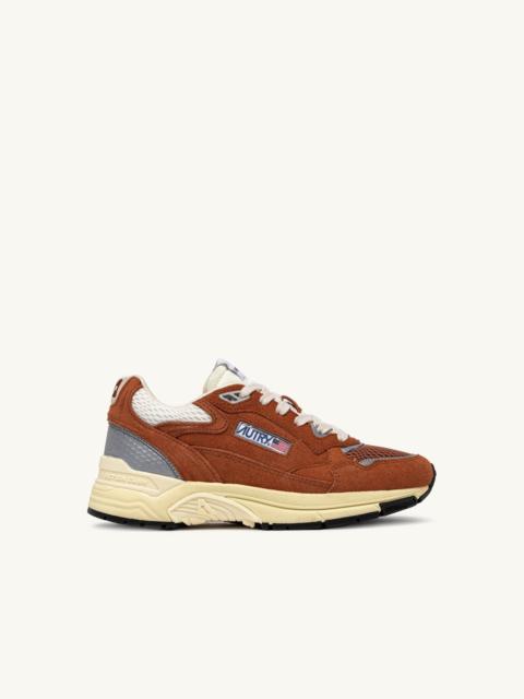 Hyperway: the Autry sneakers inspired by the future. Running style meets urban inspiration with the new Action Cush technology for maximum comfort. The upper stands out for its combination of two materials. Mesh, lightweight and breathable, ensures comfort; suede, completes the design with a sophisticated finish, evoking a vintage aesthetic. The sole features 'Action Cush' technology, delivering enhanced cushioning and optimal comfort for a uniquely smooth and enjoyable movement experience. The TPR stabilizer, strategically placed, provides support and stability. The nylon tongue adds a functional yet refined touch, while the embossed leather back counter, the jacquard fabric label at the tongue, and the side logo bring an extra layer of authenticity. SPECIFICATIONS: - Mesh and suede upper. - Mesh toe. - Flat cotton laces. - Jacquard logo label. - Padded collar in mesh. - Cotton terry lining. - 1.5 mm high mesh-lined sockliner. - PI sole. - Height of sole: 3.5 cm. - Personalized dust bag in nylon. COMPOSITIONS: Upper: 75% leather , 25% fabric (100% polyester) Lining: 50% cotton terry, 10% nylon, 5% leather, 35% mesh Sole: 40% Phylon, 20% TPU, 40% rubber