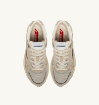 Hyperway: the Autry sneakers inspired by the future. Running style meets urban inspiration with the new Action Cush technology for maximum comfort. The upper stands out for its combination of two materials. Mesh, lightweight and breathable, ensures comfort; suede, completes the design with a sophisticated finish, evoking a vintage aesthetic. The sole features 'Action Cush' technology, delivering enhanced cushioning and optimal comfort for a uniquely smooth and enjoyable movement experience. The TPR stabilizer, strategically placed, provides support and stability. The nylon tongue adds a functional yet refined touch, while the embossed leather back counter, the jacquard fabric label at the tongue, and the side logo bring an extra layer of authenticity. SPECIFICATIONS: - Mesh and suede upper. - Mesh toe. - Flat cotton laces. - Jacquard logo label. - Padded collar in mesh. - Cotton terry lining. - 1.5 mm high mesh-lined sockliner. - PI sole. - Height of sole: 3.5 cm. - Personalized dust bag in nylon. COMPOSITIONS: Upper: 70% suede, 15% mesh (100% PL), 10% nylon, 5% synthetic material (100% PU) Lining: 70% cotton terry, 10% nylon, 5% leather, 15% mesh Sole: 40% Phylon, 20% TPU, 40% rubber