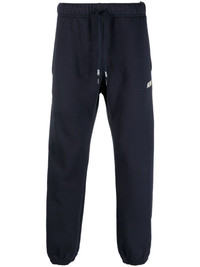 logo-applique track trousers Highlights - Navy blue/white - Cotton - Applique logo - Elasticated drawstring waistband - Straight leg - Two side slit pockets - Rear patch pocket - Mini logo tag - Elasticated hem Made in Italy Composition Cotton 100% SIZE & FIT Model measurements Height 6 ft 2 in(1.87 m) Bust/Chest 36.41 in(92.5 cm) Hips 35.43 in(90 cm) Waist 29.52 in(75 cm) FittingInformation Designed for a slim tapered leg, offering a close fit that sits just away from the leg with a closer fit towards the ankle The elasticated hem at the ankle allows for movement and a comfortable fit Made from a midweight non-stretch fabric, this piece offers minimal elasticity when worn This piece fits true to size – take your usual size