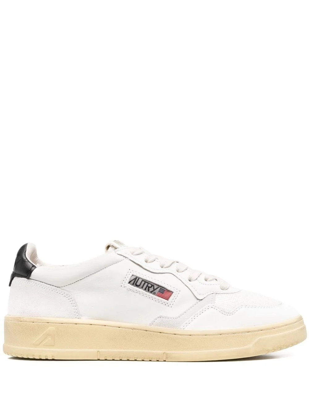 leather plow-top sneakers white leather round toe front lace-up fastening logo patch to the side logo-print tongue Imported Composition Sole: Rubber 100% Lining: Fabric 100%, Calf Leather 100% Outer: Fabric 100%, Calf Leather 100% SIZE & FIT Measurement HEEL 1.77 in(4.5 cm) Sole height 1.18 in(3 cm)