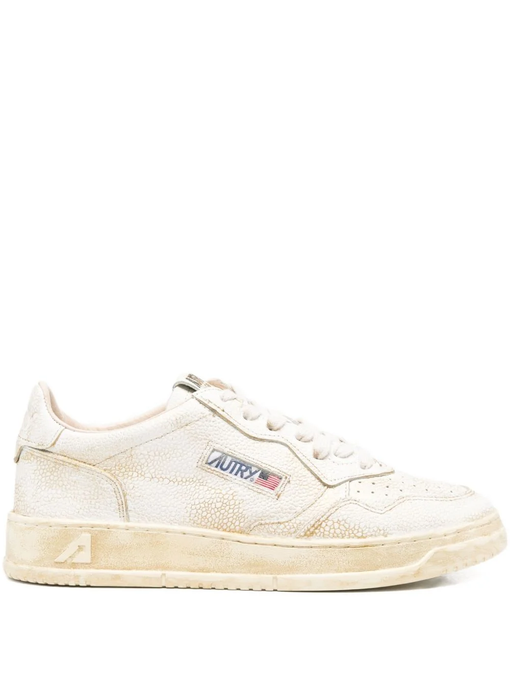 leather sneakers Highlights - Off-white - Leather - Textured effect - Lace-up fastening - Flat sole - Low-top design Imported Composition Outer: Leather 100% Sole: Rubber 100% Lining: Leather 100% Washing instructions Read Manufacturer Guidelines