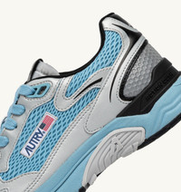 Hyperway: the Autry sneaker inspired by the future. Running style meets urban inspiration with the new Action Cush technology for maximum comfort. The upper stands out for the combined use of mesh, light and breathable for comfort, while silver-tone and black inserts introduce a modern style detailing and bold contrast. The sole features 'Action Cush' technology, delivering enhanced cushioning and optimal comfort for a uniquely smooth and enjoyable movement experience. The TPR stabilizer, strategically placed, provides support and stability. This style stands out for its refined nylon tongue offering a sleek, functional design, along with the embossed leather back counter and jacquard fabric tag and logo on the side, which add an extra touch of authenticity. SPECIFICATIONS: - PU leather, leather and mesh upper. - Mesh toe. - Flat cotton laces. - Logo label detailing seamed at the tongue. - Padded ankle collar in mesh. - Cotton terry lining. - 15 mm high raised mesh fabric-lined sockliner. - PI sole. - Height of sole: 3.5 cm. - Personalized shoe bag in fabric. COMPOSITION: Upper: 45% synthetic material (100% PU), 40% mesh, 5% leather, 10% nylon Lining: 50% cotton terry, 10% nylon, 10% leather, 30% mesh Sole: 40% phylon, 40% rubber, 20% TPU