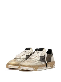 logo-patch sneakers Highlights - White - Leather - Panelled design - Lace-up fastening - Flat rubber sole - Distressed effect Imported Composition Outer: Leather 100% Sole: Rubber 100% Lining: Fabric 100%