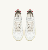 Our Medalist sneakers showcases an essential, laidback design with an attitude. The sporty silhouette seamlessly blends 1980s tennis inspiration with high-quality materials. Wear it every day with your favourite off-duty and smart casual outfits. These men's sneakers are crafted from supple white leather that's minimally treated for a natural finish and detailed with a perforated toe for breathability. The red leather heel tab adds a pop of colour to the look. SPECIFICATIONS: - Leather upper - Perforated toe - Flat cotton laces - Label sewn on tongue - Padded ankle collar - Lined in leather and cotton terry - 2 cm leather insole - Rubber sole - Height of sole: 2,5-3,5 cm. - Fabric dust bag. COMPOSITION: Upper Material: 100% cow leather Lining: 40% pigskin; 50% towel; 10% nylon Outsole: 100% rubber