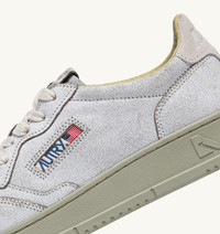 The iconic imagery of tennis lies at the core of Autry's collections. Reimagined for contemporary style, these Medalist sneakers stand out with a light gray suede upper featuring a refined scraped effect, giving the shoe an avant-garde, urban attitude. This men’s model stays true to the original Autry spirit, inspired by 1980s tennis, while updating it with streetwear proportions for a fresh experience of style and comfort. It is defined by its authentic look, a rubber sole that keeps pace with your steps, and a micro-perforated toe for excellent breathability. Logo details on the tongue, side, and heel tab in tone-on-tone suede add a touch of authenticity. SPECIFICATIONS: - Upper in scraped suede. - Micro-perforated toe. - Flat laces in cotton. - Embroidery label detailing seamed at the tongue. - Padded collar. - Leather and cotton terry lining. - 2 cm-high raised sockliner in leather. - Rubber sole. - Height of sole: 2.5-3.5 cm. - Personalized shoe bag in fabric. SPECIFICATIONS: Upper: 100% scraped suede Lining: 40% leather, 50% cotton terry, 10% nylon Sole: 100% rubber