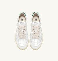 Our Medalist sneakers showcases an essential, laidback design with an attitude. The sporty silhouette seamlessly blends 1980s tennis inspiration with high-quality materials. Wear it every day with your favourite off-duty and smart casual outfits. These men's sneakers are crafted from supple white leather that's minimally treated for a natural finish and detailed with a perforated toe for breathability. The green leather heel tab adds a pop of colour to the look. SPECIFICATIONS: - Leather upper - Perforated toe - Flat cotton laces - Label sewn on tongue - Padded ankle collar - Lined in leather and cotton terry - 2 cm leather insole - Rubber sole - Height of sole: 2,5-3,5 cm. - Fabric dust bag. COMPOSITION: Upper Material: 100% cow leather Lining: 40% pigskin; 50% towel; 10% nylon Outsole: 100% rubber