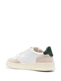 Medalist panelled leather sneakers Highlights - White/beige/dark green - Calf leather - Logo patch to the side - Embossed logo to the side - Logo patch at the tongue - Contrasting branded heel counter - Perforated toebox - Suede panelling - Round toe - Front lace-up fastening - Branded insole - Flat rubber sole Imported Composition Outer: Calf Leather 100%, Fabric 100% Lining: Fabric 100%, Calf Leather 100% Sole: Rubber 100% SIZE & FIT Measurement Sole height 0.98 in(2.5 cm) HEEL 1.37 in(3.5 cm)