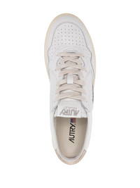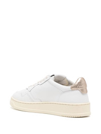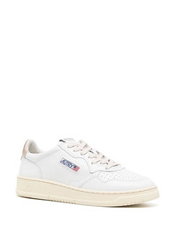 Medalist low-top sneakers Medalist low-top sneakers from Autry featuring cream white, white, gold-tone, metallic effect, leather, logo patch to the side, round toe, perforated, front lace-up fastening and flat rubber sole. Imported Composition Outer: CALFSKIN 100% Lining: Cotton 100% Sole: Rubber 100% SIZE & FIT Measurement HEEL 1.49 in(3.8 cm) Sole height 1.1 in(2.8 cm)