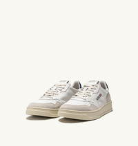 Reimagined with modern proportions and high quality materials, Autry's Medalist sneakers brings a contemporary twist to '80s tennis shoes. This men's sneakers is crafted in soft white leather with a supple, genuine look and feel, enriched with beige suede panels that lend the design a distinctive finish. The blue leather heel tab is branded with the Autry logo. SPECIFICATIONS: - Leather and suede upper - Perforated toe - Flat cotton laces - Label sewn on tongue - Padded ankle collar - Lined in leather and cotton terry - 2 cm leather insole - Rubber sole - Height of sole: 2,5-3,5 cm. - Fabric dust bag. COMPOSITION: Upper Material: 70% cow leather; 20% cow suede leather; 10% nylon Lining: 40% pigskin; 50% towel; 10% nylon Outsole: 100% rubber