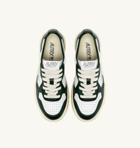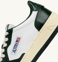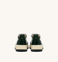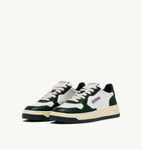 The Autry Medalist seamlessly blends all-day comfort with a refined colour palette. Crafted from white leather, this men's sneakers features green accents that define the shape of the shoe, creating a versatile and captivating two-tone effect. With its clean lines, perforated toe, and low profile, the style is complemented by a rubber sole with a coloured tread that mirrors the hues of the upper. SPECIFICATIONS: - Leather upper. - Perforated toe. - Flat cotton laces. - Label sewn on tongue. - Padded ankle collar. - Pigskin, towel and nylon lining. - 2 cm leather insole. - Rubber sole. - Height of sole: 2.5-3.5 cm. - Fabric dust bag. COMPOSITION: Upper Material: 100% cow leather Lining:: 40% pigskin, 50% towel, 10% nylon Outsole: 100% rubber