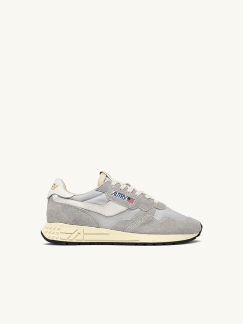 Sporty performance meets urban lifestyle in the men's Reelwind sneaker. This sleek and dynamic design captivates with its updated panel construction, blending tonal beige nylon and suede with white cracked leather inserts. The combination of colors and textures adds contrast to the clean and lightweight profile, supported by a white Phylon running sole that offers flexibility and grip with every step. Featuring details like its logo in with a 3D star motif, and the distinctive A-arrow, paying homage to the brand's history. SPECIFICATIONS: - Leather, suede and nylon upper. - Flat cotton laces. - Label sewn on tongue. - Padded ankle collar. - Lined in leather and cotton terry. - 2 cm leather insole. - Rubber sole. - Height of sole: 2.5-3.5 cm. - Fabric dust bag. COMPOSITION: Upper Material: 20% cracked cow leather, 20% suede, 5% cow leather, 55% nylon Lining:: 40% pigskin, 50% towel, 10% nylon Outsole: 60% Phylon, 40% Rubber
