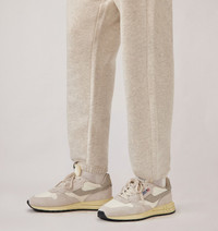 Innovative, lightweight, and remarkably flexible, Reelwind is the Autry sneakers inspired by running styles. This men's sneakers is designed for an active lifestyle, combining white suede and nylon with white leather accents on the sides. The sleek profile and performance construction ensure maximum freedom of movement, while the Rubber sole, featuring a raised tread, is detailed with a star motif and the trademark "A-arrow" – a modern and graphic reinterpretation of the Autry logo. SPECIFICATIONS: - Leather, nylon and suede upper - Flat cotton laces - Label sewn on tongue - Padded ankle collar - Lined in leather, nylon and cotton terry - 2 cm leather insole - Running sole COMPOSITION: Upper Material: 20% cracked cow leather; 30% suede leather; 5% cow leather; 40% nylon Lining: 40% pigskin; 50% towel; 10% nylon Outsole: 60% Phylon; 40% Rubber