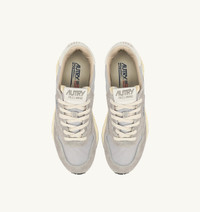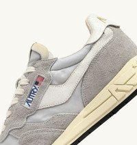 Innovative, light and extremely flexible, Reelwind Autry sneakers draw inspiration from the running world. The men's style is crafted from a mix of gray nylon and suede, with side panels in white crackle-effect leather. Designed for a dynamic lifestyle, it features a slender silhouette and performance construction that ensures maximum freedom of movement. The rubber sole with an embossed tread is personalized with a star pattern and an A-arrow that offers a graphic and modern reinterpretation of the logo. SPECIFICATIONS: - Upper in leather, nylon and suede. - Flat cotton laces. - Label detailing at tongue. - Padded collar. - Nylon, leather and cotton terry lining. - 2-cm raised sockliner in leather. - Running outsole. - Height of sole: 2.5-3.5 cm. - Personalize shoe bag in fabric. COMPOSITION: Upper: 60% nylon, 40% leather Lining: 40% leather, 50% cotton terry, 10% nylon Sole: 60% Phylon, 40% rubber